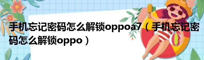 手机忘记密码怎么解锁oppoa7(手机忘记密码怎么解锁oppo)