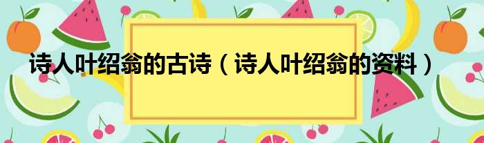 诗人叶绍翁的古诗(诗人叶绍翁的资料)