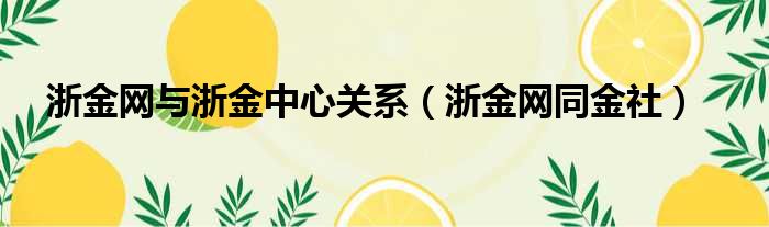 浙金网与浙金中心关系(浙金网同金社)