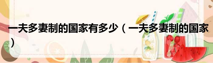 一夫多妻制的国家有多少(一夫多妻制的国家)