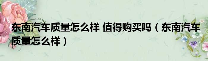 东南汽车质量怎么样 值得购买吗(东南汽车质量怎么样)