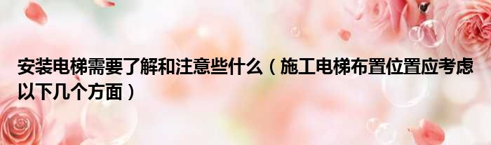 大家好,小东方来为大家解答以上的问题。安装电梯需要了解和注意些什么,施工电梯布置位置应考虑以下几个方面这个很多人还不知道,现在让我们一起来看看吧!