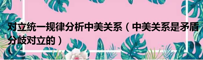 对立统一规律分析中美关系(中美关系是矛盾分歧对立的)