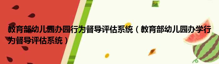教育部幼儿园办园行为督导评估系统(教育部幼儿园办学行为督导评估系统)