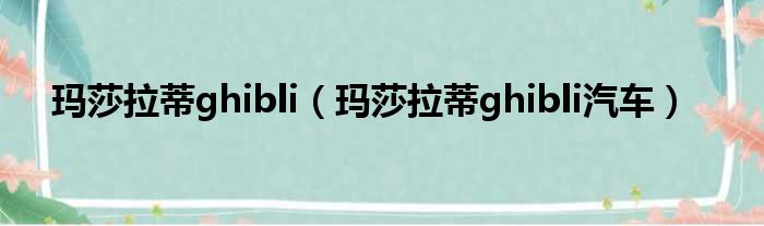 玛莎拉蒂ghibli(玛莎拉蒂ghibli汽车)