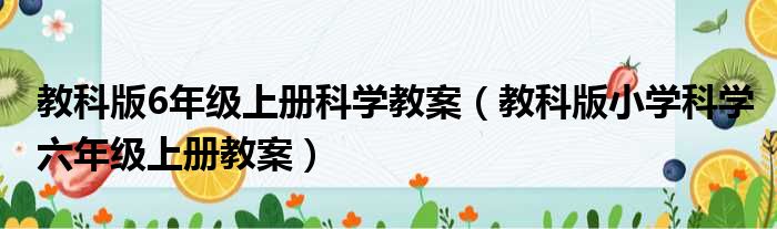 教科版6年级上册科学教案(教科版小学科学六年级上册教案)