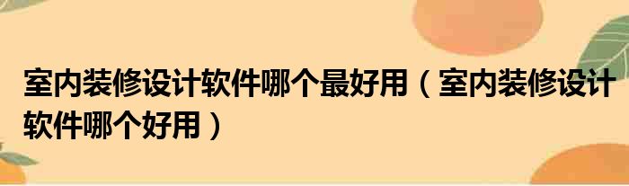 室内装修设计软件哪个最好用(室内装修设计软件哪个好用)
