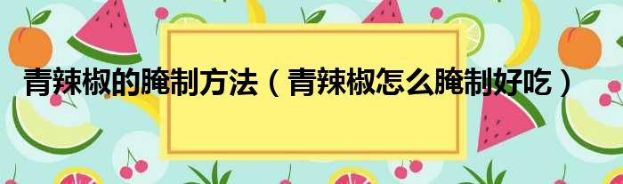 青辣椒的腌制方法(青辣椒怎么腌制好吃)