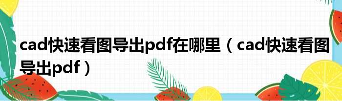 cad快速看图导出pdf在哪里(cad快速看图导出pdf)