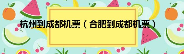 大家好,小东方来为大家解答以上的问题。杭州到成都机票,合肥到成都机票这个很多人还不知道,现在让我们一起来看看吧!
