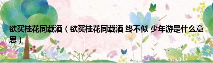 欲买桂花同载酒(欲买桂花同载酒 终不似 少年游是什么意思)