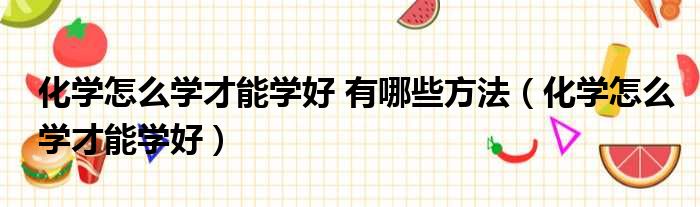 化学怎么学才能学好 有哪些方法(化学怎么学才能学好)