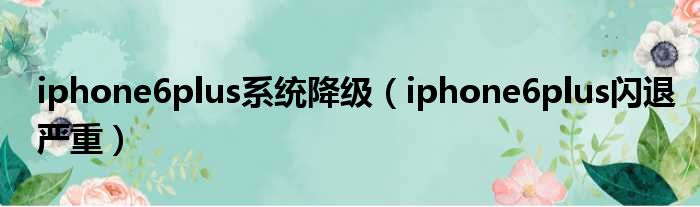 大家好,小东方来为大家解答以上的问题。iphone6plus系统降级,iphone6plus闪退严重这个很多人还不知道,现在让我们一起来看看吧!
