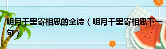 明月千里寄相思的全诗(明月千里寄相思下一句)