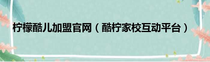柠檬酷儿加盟官网(酷柠家校互动平台)