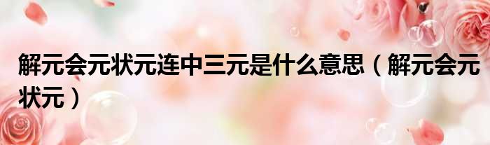 大家好,小东方来为大家解答以上的问题。解元会元状元连中三元是什么意思,解元会元状元这个很多人还不知道,现在让我们一起来看看吧!
