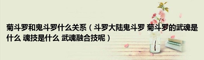 大家好,小东方来为大家解答以上的问题。菊斗罗和鬼斗罗什么关系,斗罗大陆鬼斗罗 菊斗罗的武魂是什么 魂技是什么 武魂融合技呢这个很多人还不知道,现在让我们一起来看看吧!
