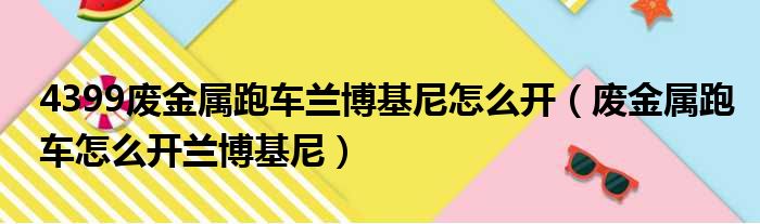 4399废金属跑车兰博基尼怎么开(废金属跑车怎么开兰博基尼)