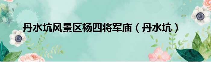 大家好,小东方来为大家解答以上的问题。丹水坑风景区杨四将军庙,丹水坑这个很多人还不知道,现在让我们一起来看看吧!