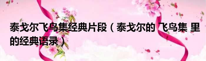 泰戈尔飞鸟集经典片段(泰戈尔的 飞鸟集 里的经典语录)
