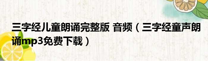 三字经儿童朗诵完整版 音频(三字经童声朗诵mp3免费下载)