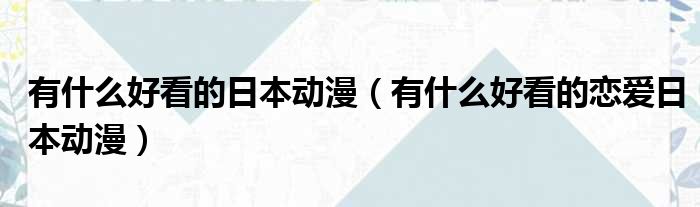 有什么好看的日本动漫(有什么好看的恋爱日本动漫)