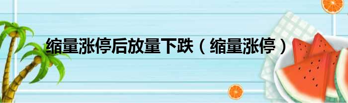 大家好,小东方来为大家解答以上的问题。缩量涨停后放量下跌,缩量涨停这个很多人还不知道,现在让我们一起来看看吧!