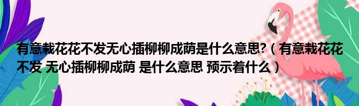 有意栽花花不发无心插柳柳成荫是什么意思?(有意栽花花不发 无心插柳柳成荫 是什么意思 预示着什么)