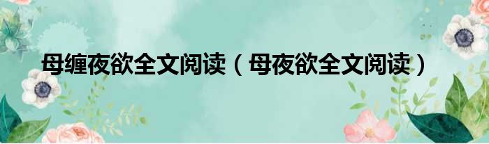母缠夜欲全文阅读(母夜欲全文阅读)