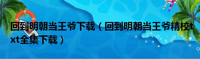 大家好,小东方来为大家解答以上的问题。回到明朝当王爷下载,回到明朝当王爷精校txt全集下载这个很多人还不知道,现在让我们一起来看看吧!