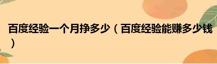 百度经验一个月挣多少(百度经验能赚多少钱)