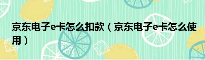 京东电子e卡怎么扣款(京东电子e卡怎么使用)