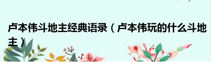卢本伟斗地主经典语录(卢本伟玩的什么斗地主)
