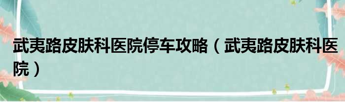 武夷路皮肤科医院停车攻略(武夷路皮肤科医院)