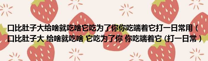 大家好,小东方来为大家解答以上的问题。口比肚子大给啥就吃啥它吃为了你你吃端着它打一日常用,口比肚子大 给啥就吃啥 它吃为了你 你吃端着它 (打一日常这个很多人还不知道,现在让我们一起来看看吧!