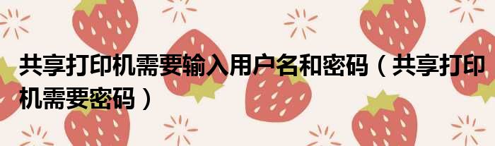 共享打印机需要输入用户名和密码(共享打印机需要密码)