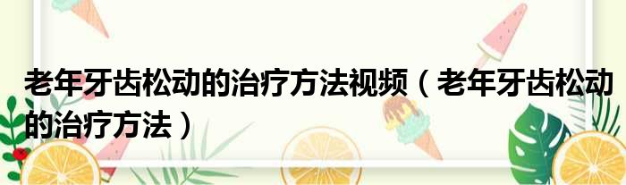 老年牙齿松动的治疗方法视频(老年牙齿松动的治疗方法)