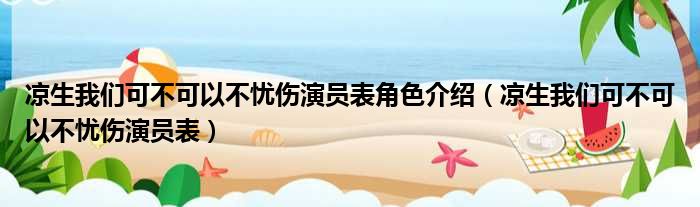 大家好,小东方来为大家解答以上的问题。凉生我们可不可以不忧伤演员表角色介绍,凉生我们可不可以不忧伤演员表这个很多人还不知道,现在让我们一起来看看吧!