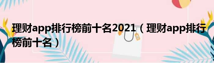 理财app排行榜前十名2021(理财app排行榜前十名)