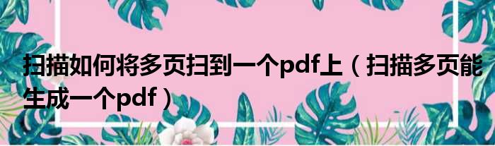 扫描如何将多页扫到一个pdf上(扫描多页能生成一个pdf)