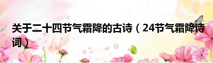 关于二十四节气霜降的古诗(24节气霜降诗词)