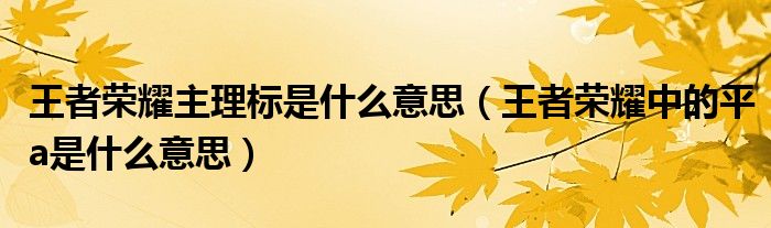 王者荣耀主理标是什么意思(王者荣耀中的平a是什么意思)