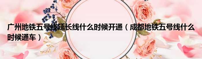 广州地铁五号线延长线什么时候开通(成都地铁五号线什么时候通车)