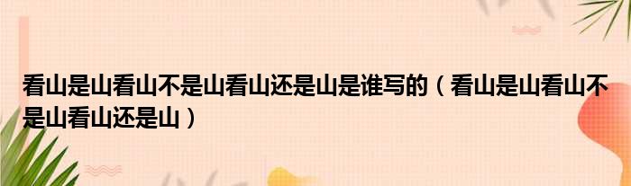 看山是山看山不是山看山还是山是谁写的(看山是山看山不是山看山还是山)