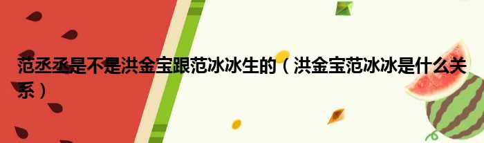 范丞丞是不是洪金宝跟范冰冰生的(洪金宝范冰冰是什么关系)