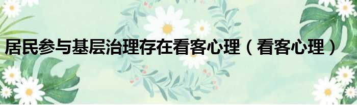 大家好,小东方来为大家解答以上的问题。居民参与基层治理存在看客心理,看客心理这个很多人还不知道,现在让我们一起来看看吧!