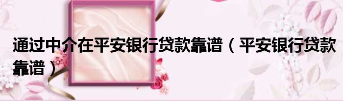 通过中介在平安银行贷款靠谱(平安银行贷款靠谱)