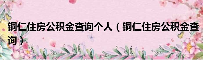 铜仁住房公积金查询个人(铜仁住房公积金查询)