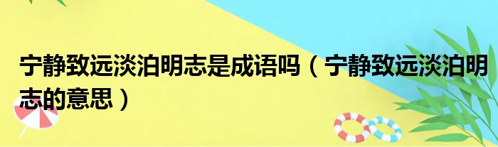 宁静致远淡泊明志是成语吗(宁静致远淡泊明志的意思)