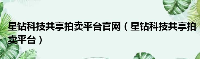 星钻科技共享拍卖平台官网(星钻科技共享拍卖平台)